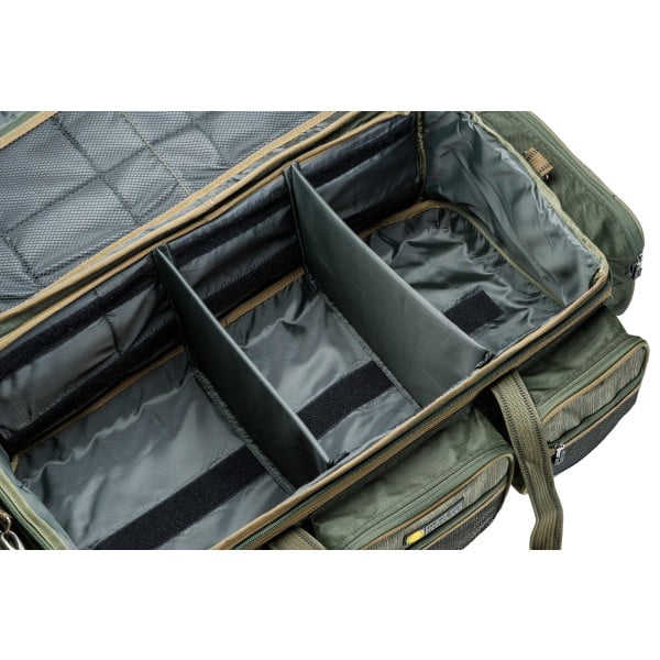 XXL različica carryalla New Dynasty. Gigantski glavni predel s svojima dvema delitvama lahko shrani vse, kar potrebujete med vašo sejo. Več notranjih in pet zunanjih žepov pomaga shraniti manjše dodatke na urejen način. Trdo pokrovno ploščo lahko uporabite kot mizo. Trda EVA osnova, trdi stranski deli ter trpežne zadrge in trakovi s kovinskimi sponkami zagotavljajo brezkompromisno kakovost tega ekstremnega kosa potovalne opreme.